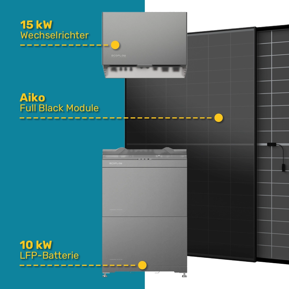 PV Set 30 Full Black AIKO Module mit 15 kW PowerOceanPlus Wechselrichter und 10kW LFP Speicher von Ecoflow